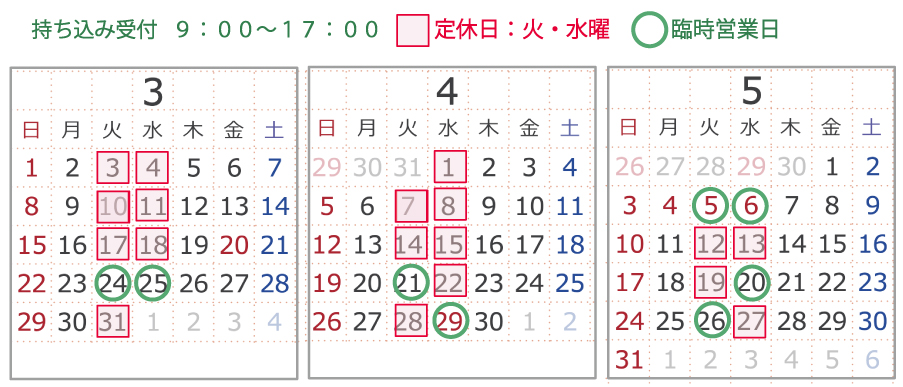 ※ 持込受付 毎週 日・月・木・金・土曜 9時〜17時